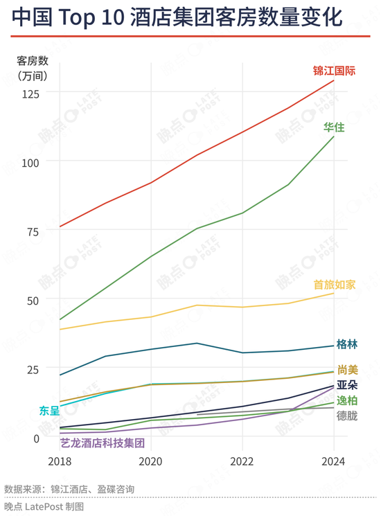 2008 年全球金融危机后,锦江抓住投资机构退出的机会,收购卢浮(Louvre)酒店集团,后又从海航手中接过丽笙(Radisson)酒店集团,成为在海外拥有约 2000 家酒店(主要在欧洲、亚太)的全球化品牌。2010 年代民营经济蓬勃,锦江又并购了经营 7 天酒店品牌的铂涛集团和华南地区颇受欢迎的维也纳酒店集团,抓住了经济型酒店和中端酒店的扩张机会,在 2016 年成为中国酒店数量最多的酒店集团。