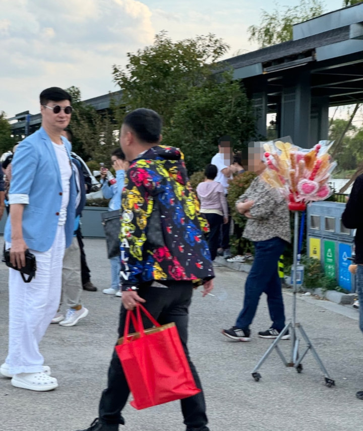 梳理发现,之前,他外出的时候也被偶遇过。这是当时网友分享的照片。他或戴一副墨镜,身穿白色T,搭配蓝色西装和白色阔腿裤,脚穿厚底洞洞鞋,手里拿着一个小包,又高又帅,妥妥的霸总既视感啊。