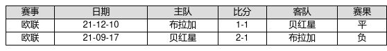 布拉加 VS 贝红星两队近10年的交战次数为2场,布拉加0胜1平1负,赢球概率为0.0%,平局概率为50.0%,输球概率为50.0%。